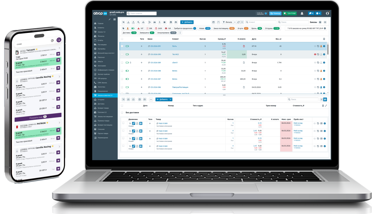 Готовое решение для торговли автозапчастями «под ключ». Подключение поставщиков и каталогов, склад и финансы, маркетплейсы, интеграция с 1С и многое другое.