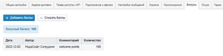 При добавлении или списании бонусов для клиента в панели управления вручную менеджер добавляет комментарий, поясняющий действие.