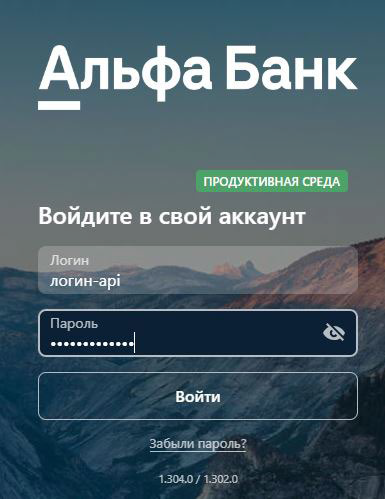 | 1. Авторизуйтесь в личном кабинете под логином -API и временным паролем. |
