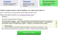 3) На третьем шаге вводится адрес сайта, без http:// , отмечаете галочку "Я прочитал Пользовательское соглашение ... ". В итоге система выдаст код карты.