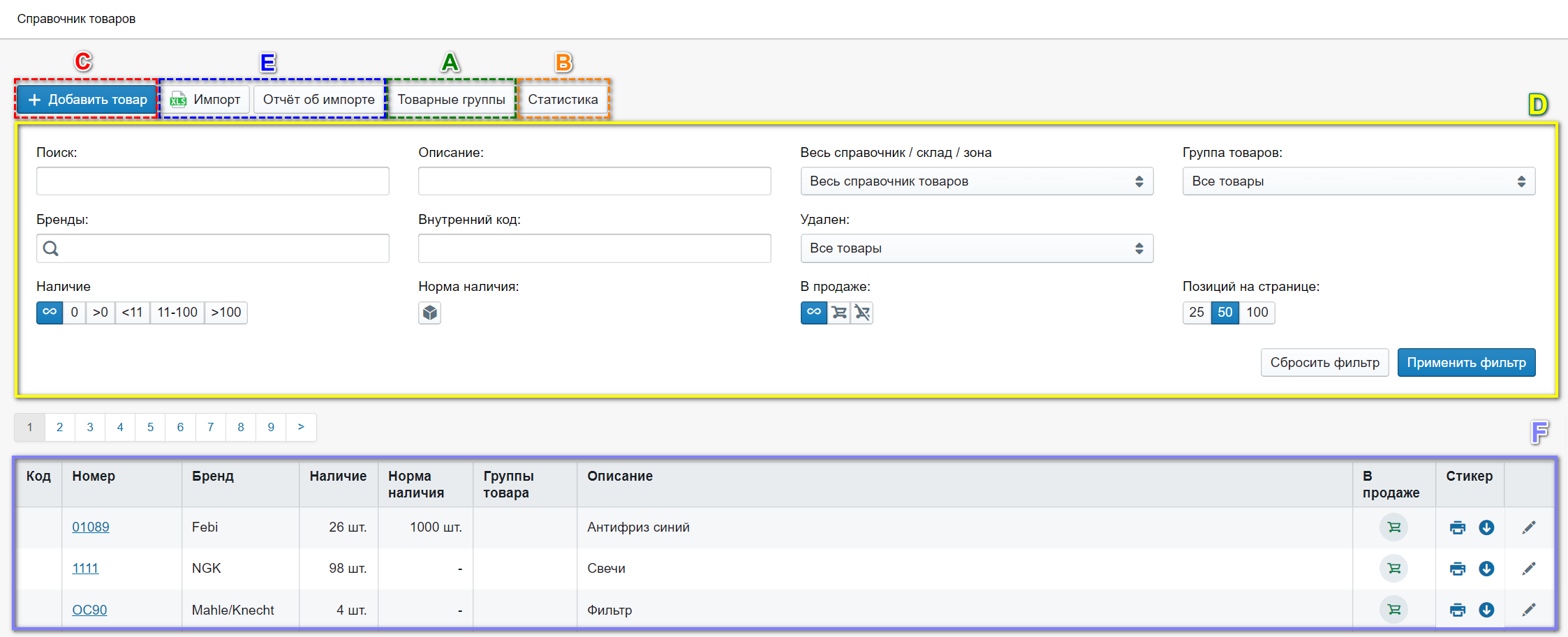 D - Инструменты для быстрого поиска товаров по параметрам;