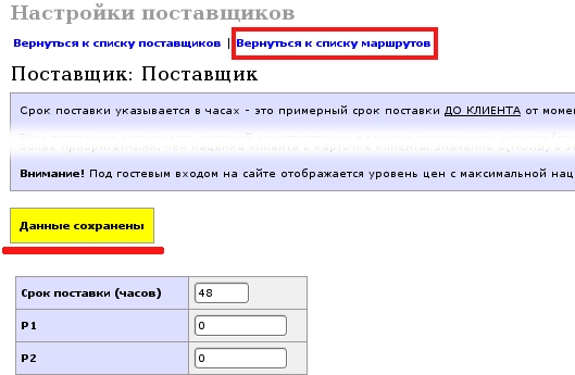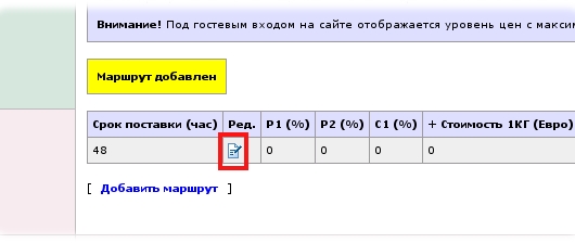 2. При переходе в редактирование маршрута уже созданного поставщика (колонка "Ред." в ПУ/Поставщики)