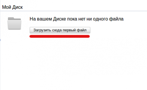 После авторизации станет доступна кнопка "Загрузить первый файл". Небходимо нажать на нее.