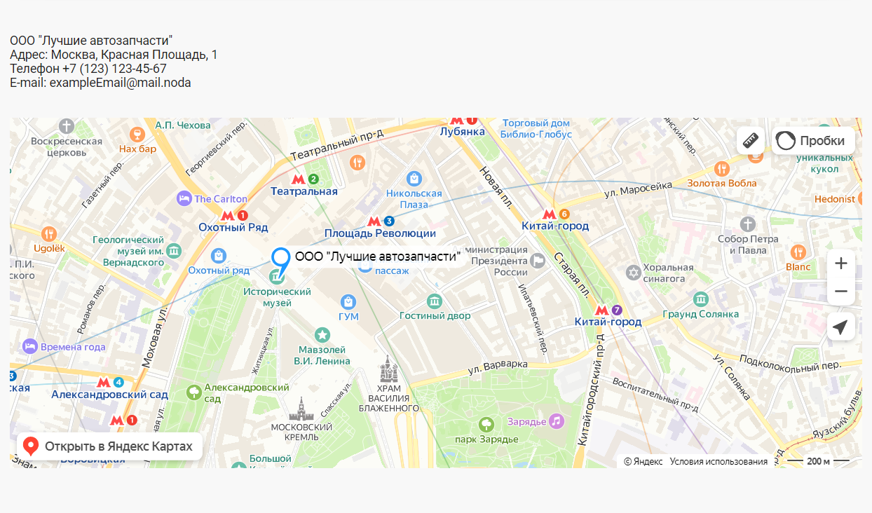 Пример страницы контакты