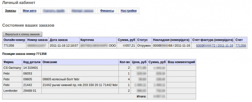 | GetListOrdersInvoice | Получение списка позиций для счета-фактуры клиента | Параметры запроса: