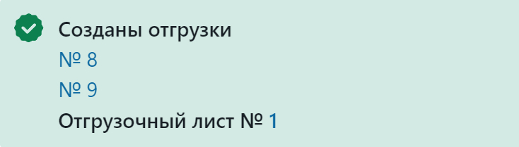 - Создаётся отгрузка текущей датой и следующий номером с позициями, которые вы выбрали в пункте 1.