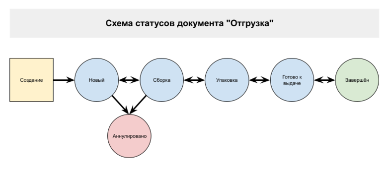 - зеленые круги - статусы, в которых товар считается списанным со склада;