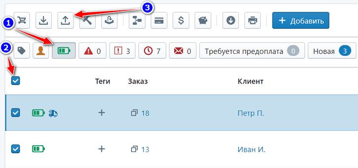 - Массово измените статус успешно выполненных доставок на «Завершено»
